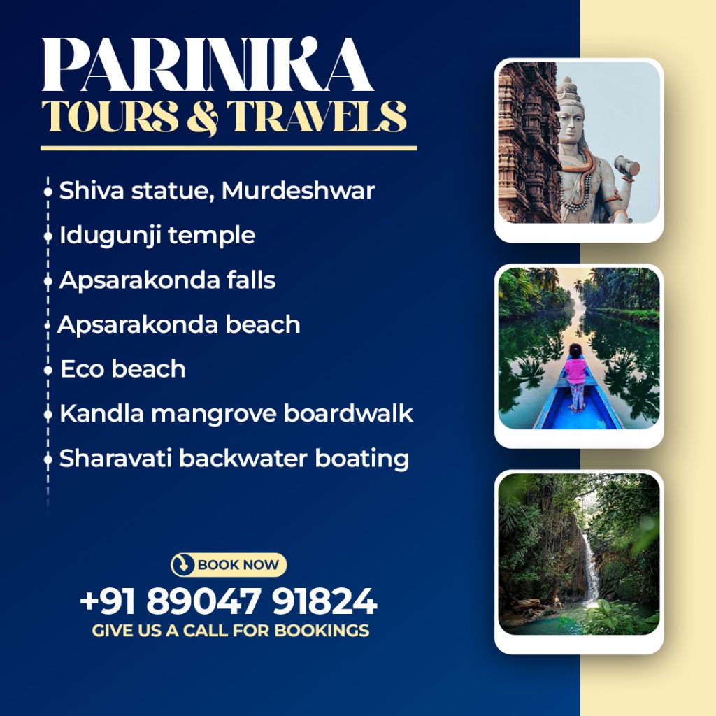 Parinika Tours and Travels offers comfortable and reliable travel services to explore the beautiful attractions around Murdeshwar. From the iconic Shiva Statue and Idagunji Temple to the scenic Apsarakonda Falls, Eco Beach, and Sharavathi backwaters, we ensure a smooth and enjoyable journey. Travel with us for safe, timely, and hassle-free local sightseeing experiences.